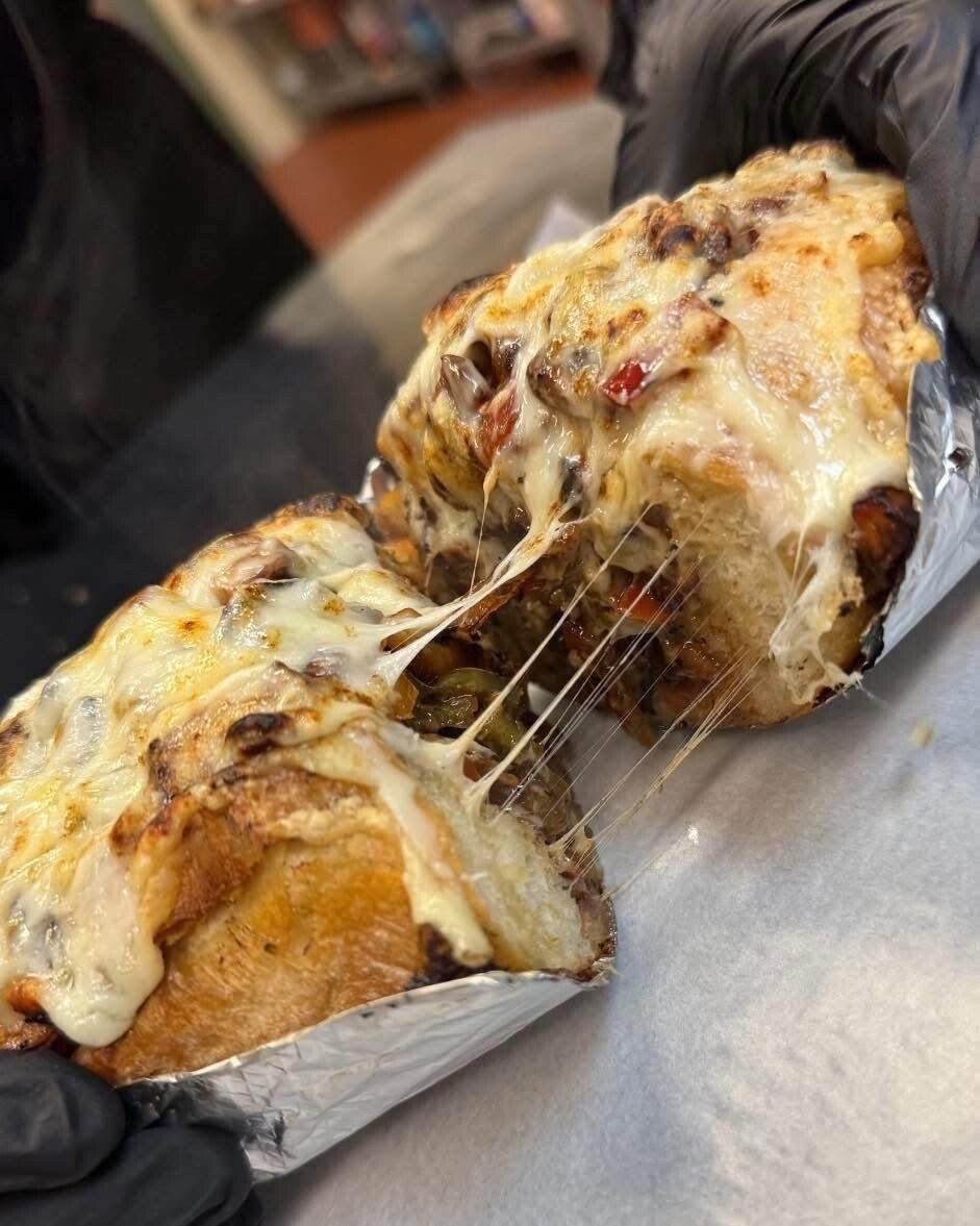 ❤️Leo’s Chopped Cheesesteak or Chicken Cheesesteak (Mushrooms, peppers, onions, mayo and provolone and now made with Cooper Sharp American Cheese!)